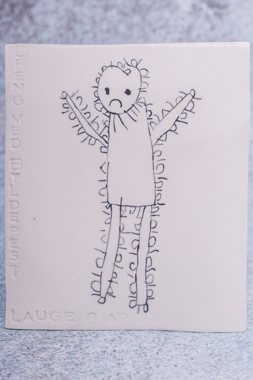 Jeg forvandler en fin gemt børnetegning til et sødt og flot keramisk billede, som kan stå eller hænge i jeres hjem mange år frem.