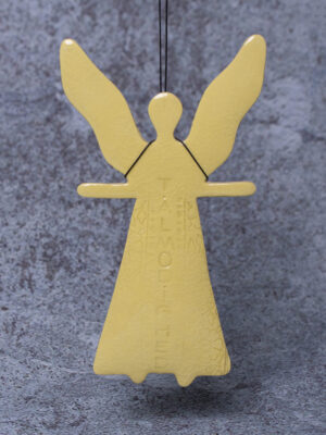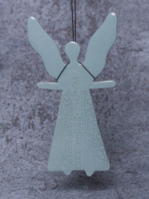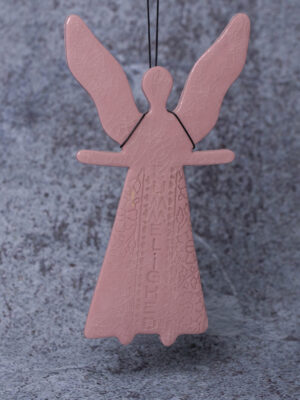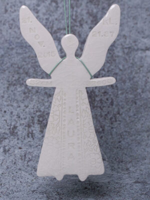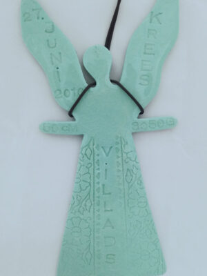 Dåbsengel fås i hvid, lyserød, blå-grøn og gul.