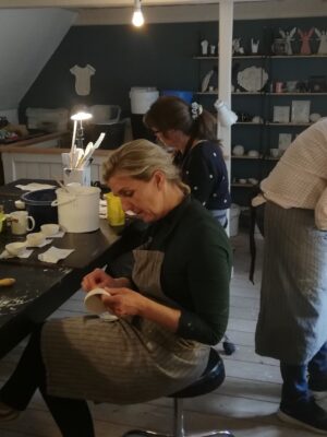 Vi arbejder intenst på at få skabt en masse spændende og personligt keramik. Vi arbejder primært i støbeforme med skåle i forskellige størrelser og kopper. Øreringe er også en mulighed. Udover, hvad du selv kan bruge derhjemme, er det også en god idé at tænke, hvilke gaver man kan få brug for i løbet af året – hjemmegjorte gaver er noget helt særligt.